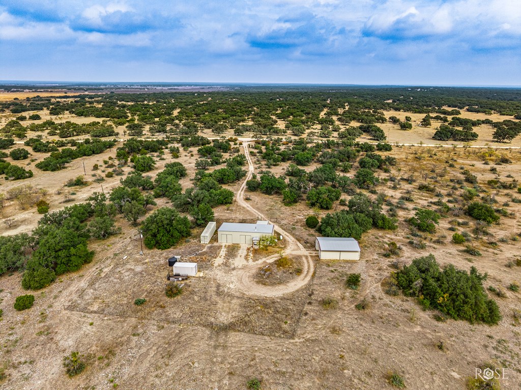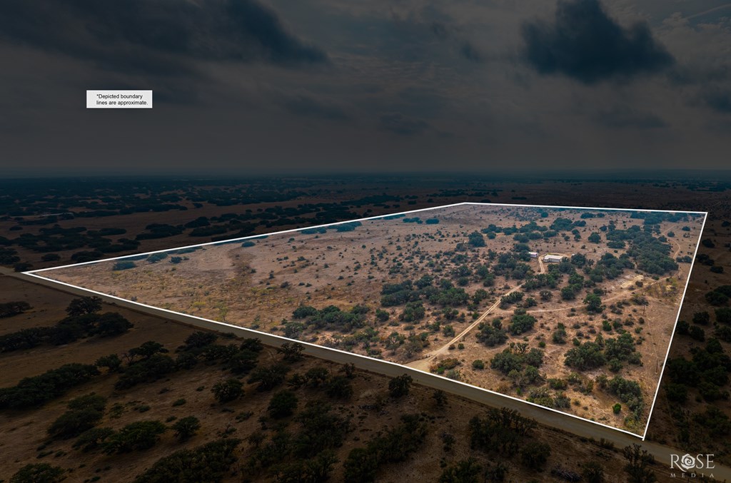 Little slice of Ranchette heaven just waiting for the perfect buyer. 125 acres with water well (10-15gpm),  fencing on all four sides, and a 2,400sf barndo.  600sf living quarters, 2 bdrm, 1 bath, kitchen, and living area. Good liveoak cover with very little cedar or mesquite.  Wildlife is in abundance with deer, turkey, dove, and varmints for all your hunting and viewing interests. This is a must see property that will not last long.  There is an easement down the east boundary for the adjoining property owner. Please allow for a minimum of 2-hour notice for showing.