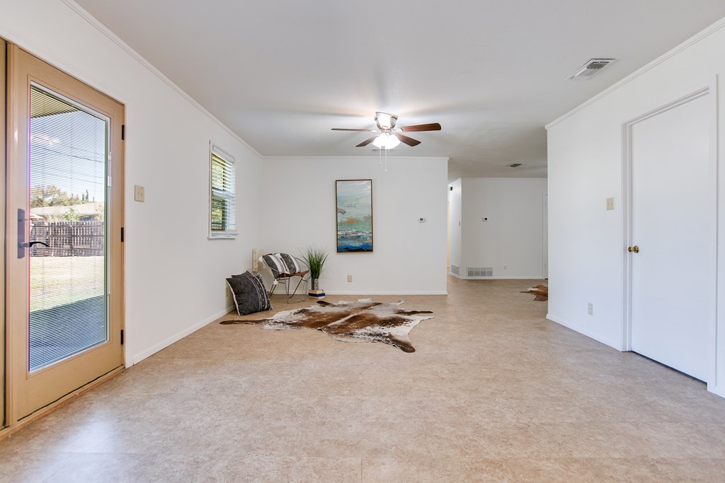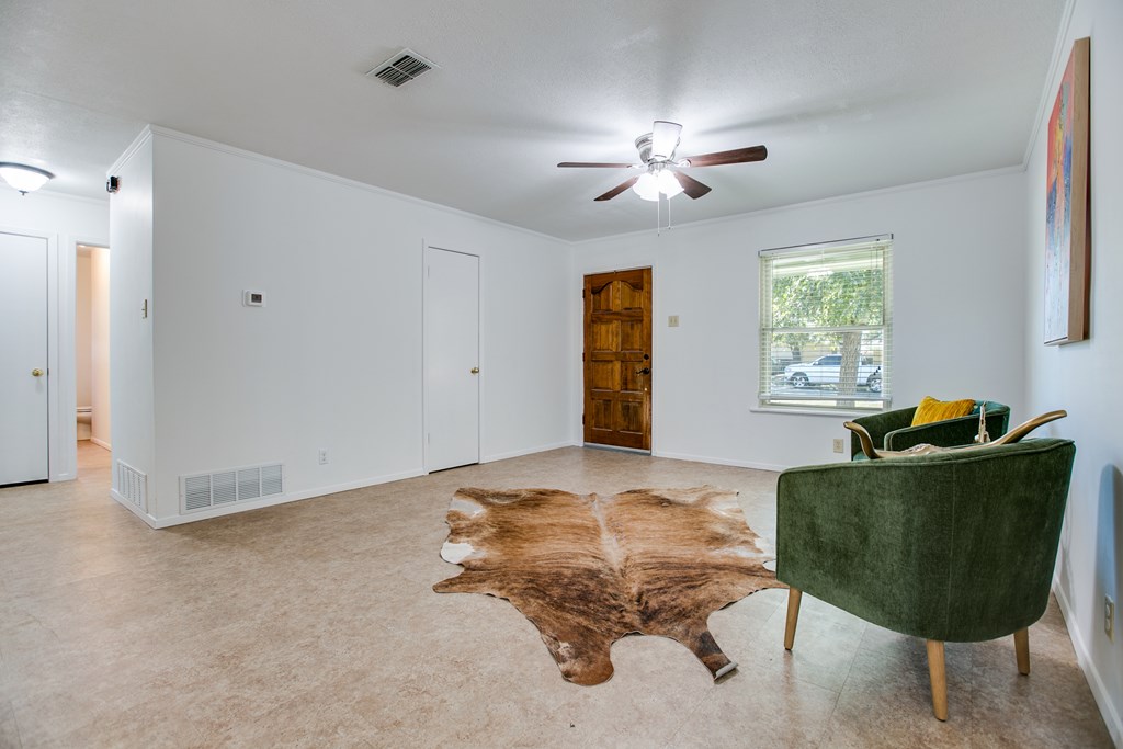Freshly painted and featuring brand-new carpet, this inviting three-bedroom, two-bath home is move-in ready and packed with updates that matter. The HVAC system was replaced in 2025 and includes a transferrable warranty for peace of mind. The current homeowner has gone above and beyond with improvements—replacing the roof, installing energy-efficient triple-pane windows, a large back gate, elegant double French patio doors, and updated garage doors. Two spacious living areas provide plenty of room for entertaining or relaxing, making this home as functional as it is comfortable. Conveniently located near Goodfellow Air Force Base and situated in the highly sought-after Glenmore Elementary School district, this property checks all the right boxes for families, military, or anyone seeking a well-maintained home in a prime location.