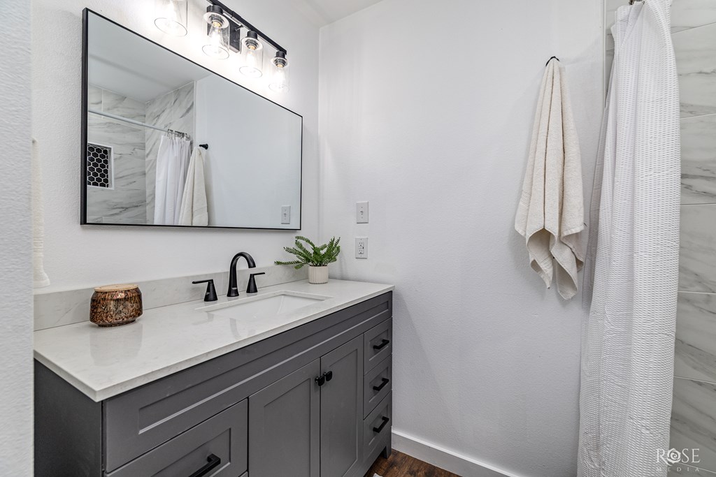 Welcome to this fully remodeled home, taken down to the studs and completely rebuilt with quality and intention. A newly constructed add-on adds an additional bedroom and bathroom, creating a layout that feels spacious and thoughtfully designed. Situated on just under an acre, the property offers room to breathe and endless possibilities. Major improvements include new electrical, new plumbing, and a recently replaced septic system, providing long-term peace of mind. A durable metal roof completes the exterior with both style and longevity. Inside, the home features a modern, light, and bright design with wood laminate flooring throughout. The updated kitchen offers multiple cabinets, a pantry, and a large island for extra counter space, making it both functional and inviting. The bathrooms are equally modern and refreshed, offering a clean, updated feel throughout the home. The spacious lot allows for the potential to build a barn or workshop.