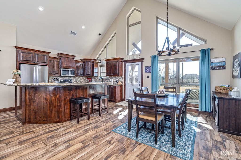 This Buffalo Heights home offers the kind of space and details that are hard to find—all on an acre lot at the end of the street. Built in 2018 by Countryside Homes, this two-story property features 5 bedrooms, 2.5 baths, and nearly 2,700 square feet of thoughtfully designed living space. The main living area makes a statement with an exposed beam and a floor-to-ceiling stone fireplace, all surrounded by natural light. The open floor plan flows seamlessly into a beautifully finished kitchen featuring custom cabinets, granite countertops, and a large pantry. The primary bedroom stands out with a tray ceiling and an oversized closet. Upstairs, the fifth bedroom is exceptionally large and includes a built-in Murphy bed, offering endless flexibility. Outside, enjoy a circle drive, 2-car garage, metal privacy fence, and a spacious covered back patio—perfectly suited for both entertaining and everyday living.