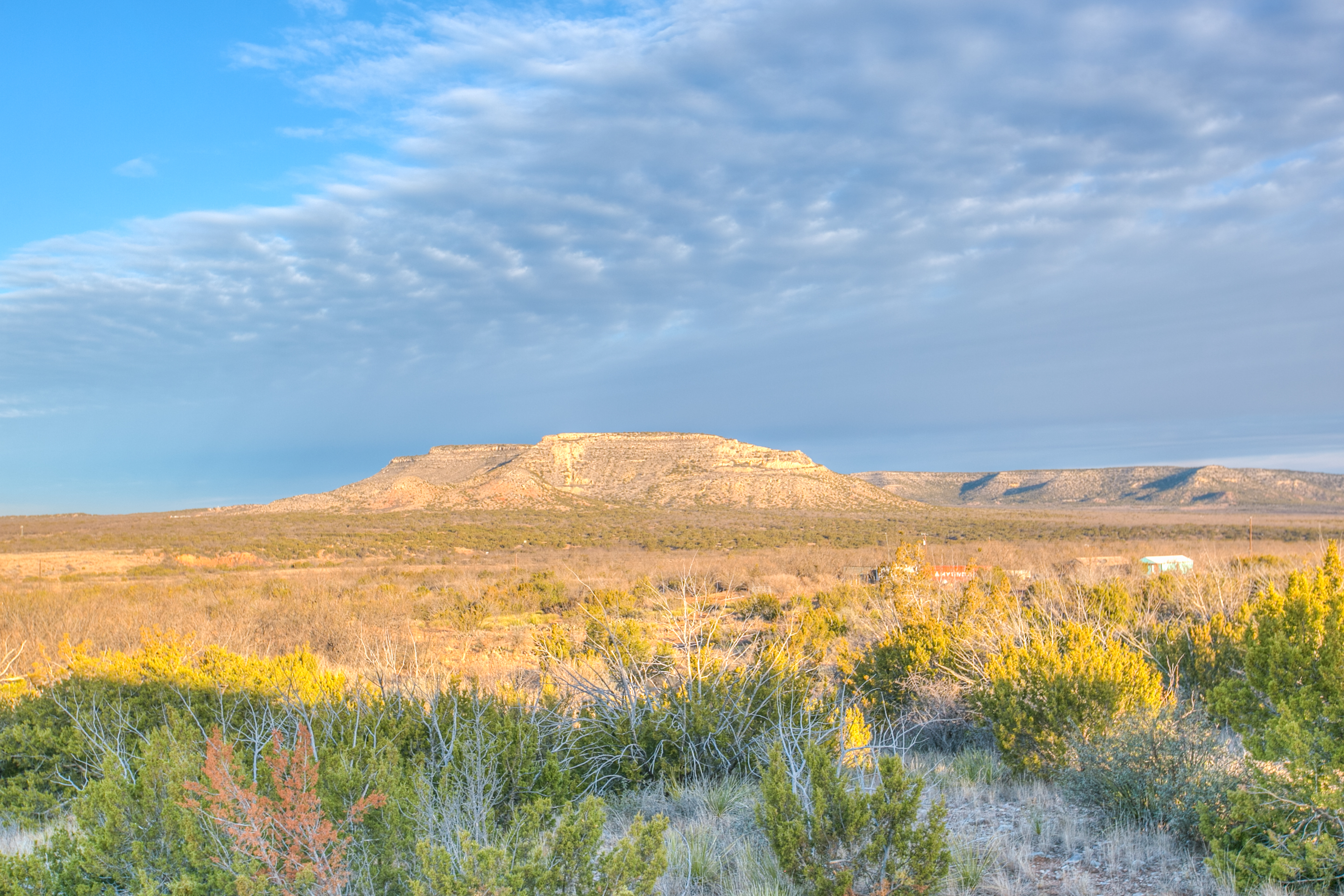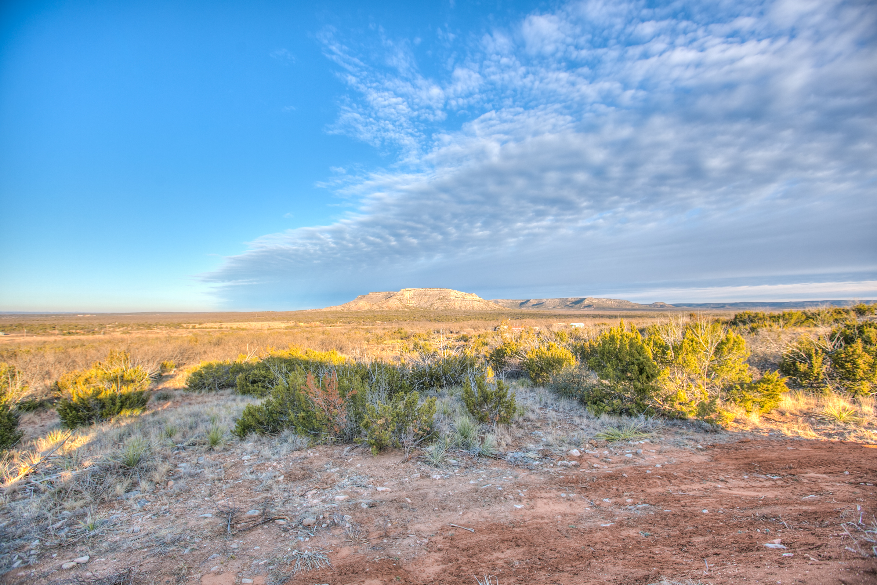 This property is located in western Coke County and offers outstanding views of the surrounding landscape. A cabin sits on an elevated location, providing 360-degree views across the property and of the nearby West Texas mesas.