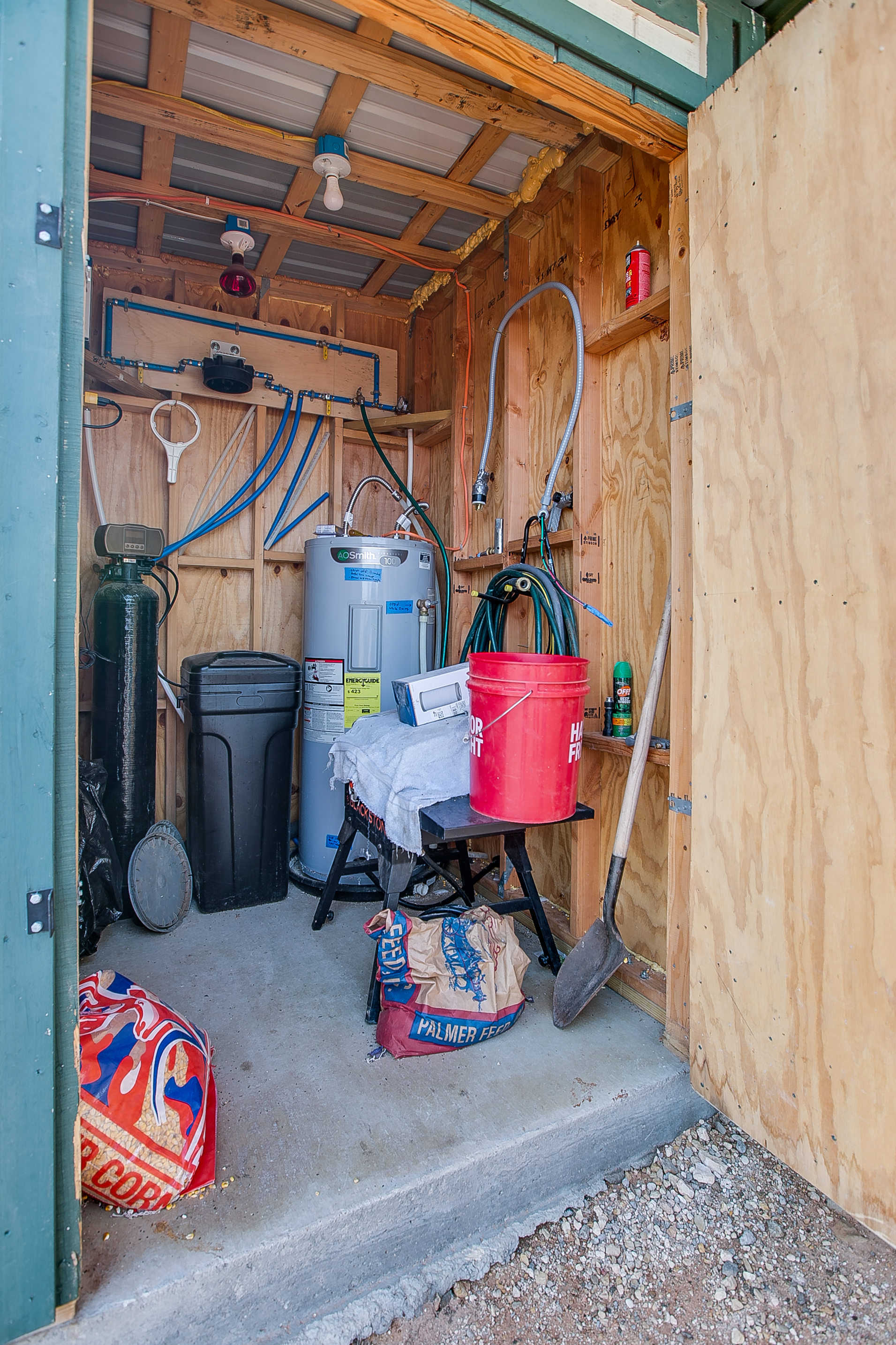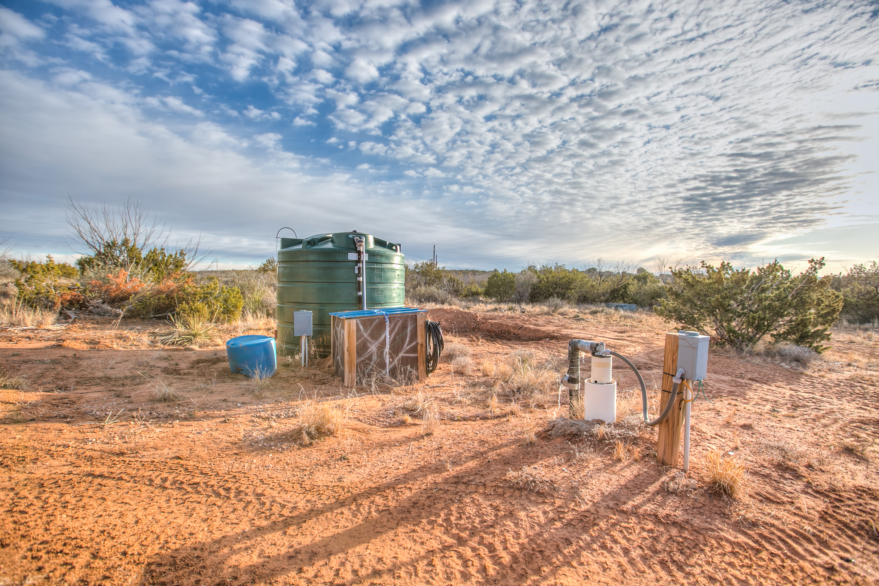 The property is supplied by a single well equipped with a submersible pump and a 1,500-gallon storage tank. The storage tank feeds a jet pump that delivers water to the cabin. The cabin is equipped with a water filtration system and a water heater, both housed in an insulated exterior closet. The water system is well-designed and easy to maintain.