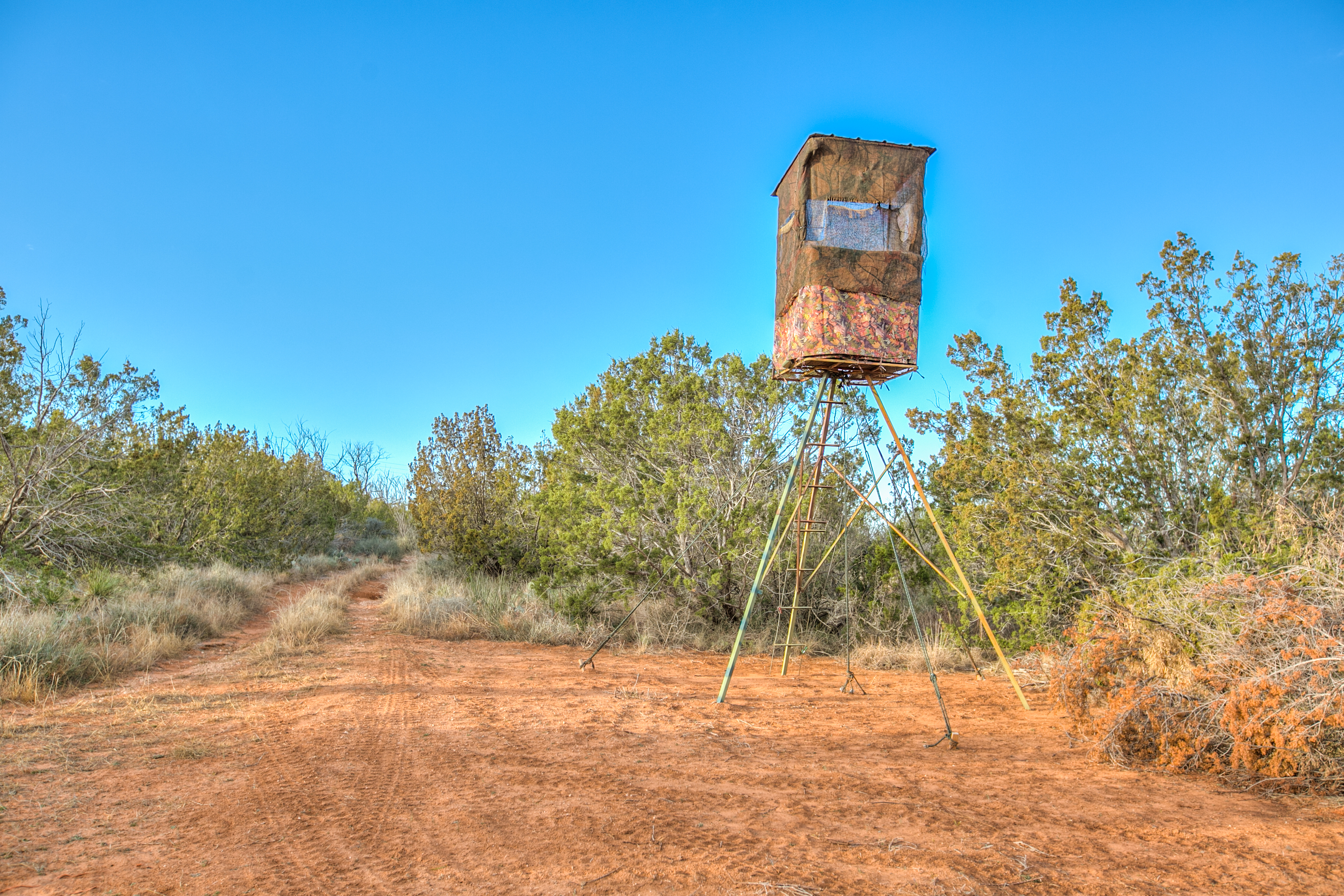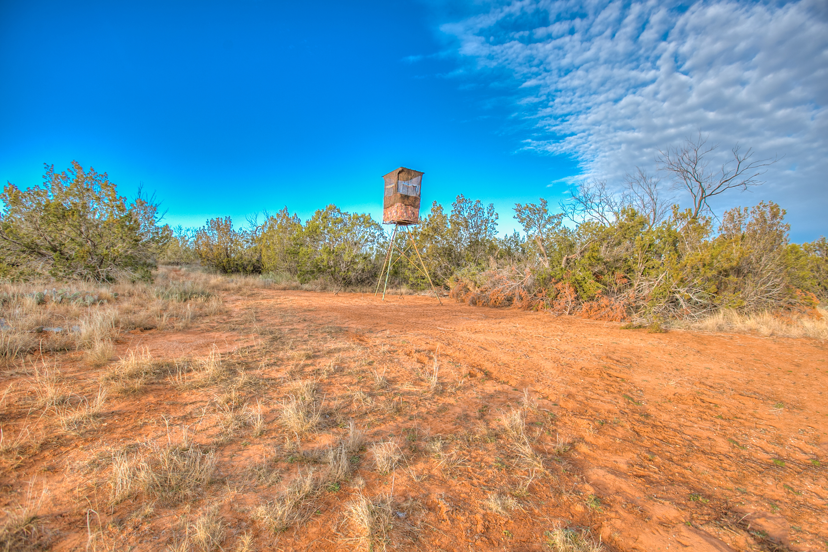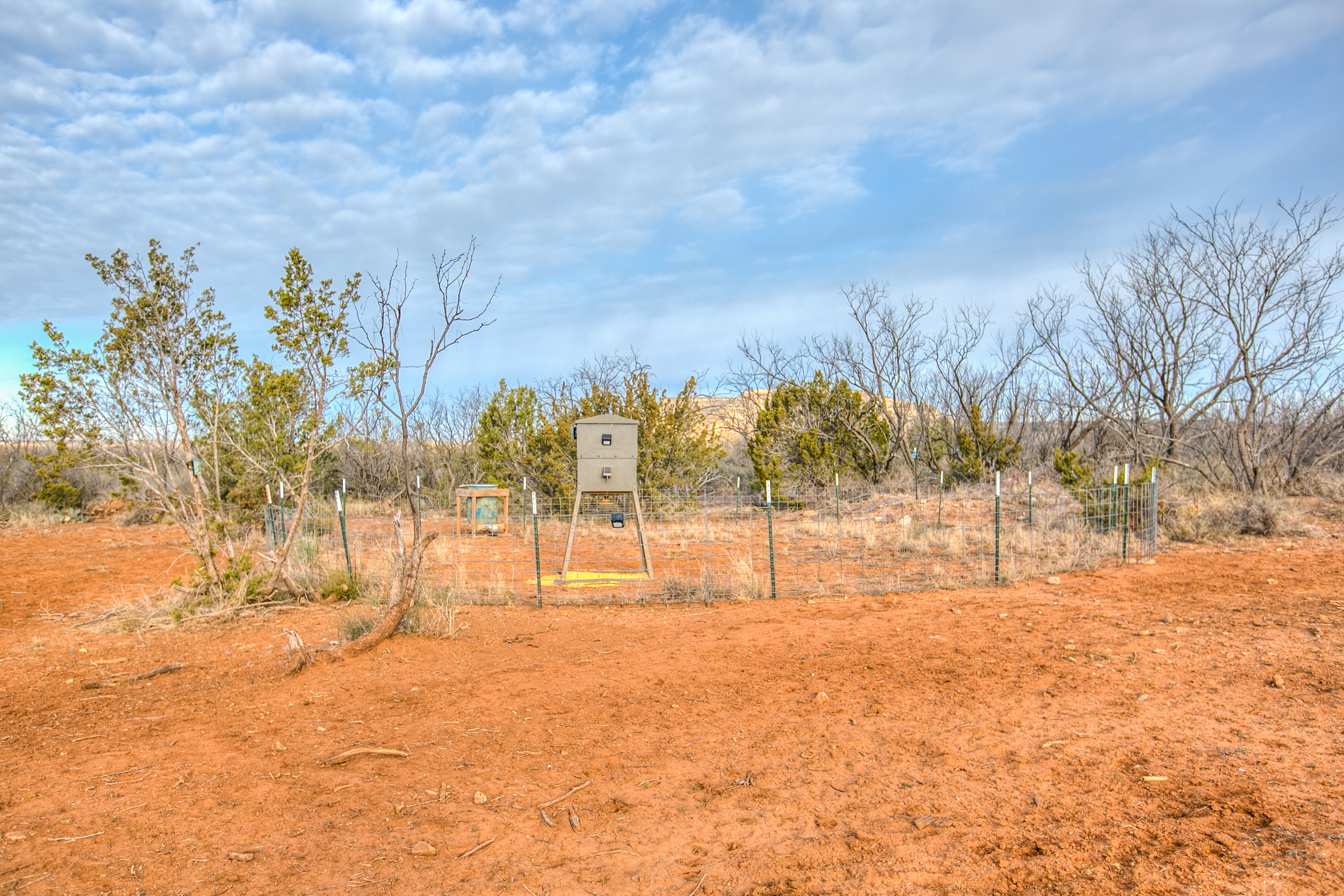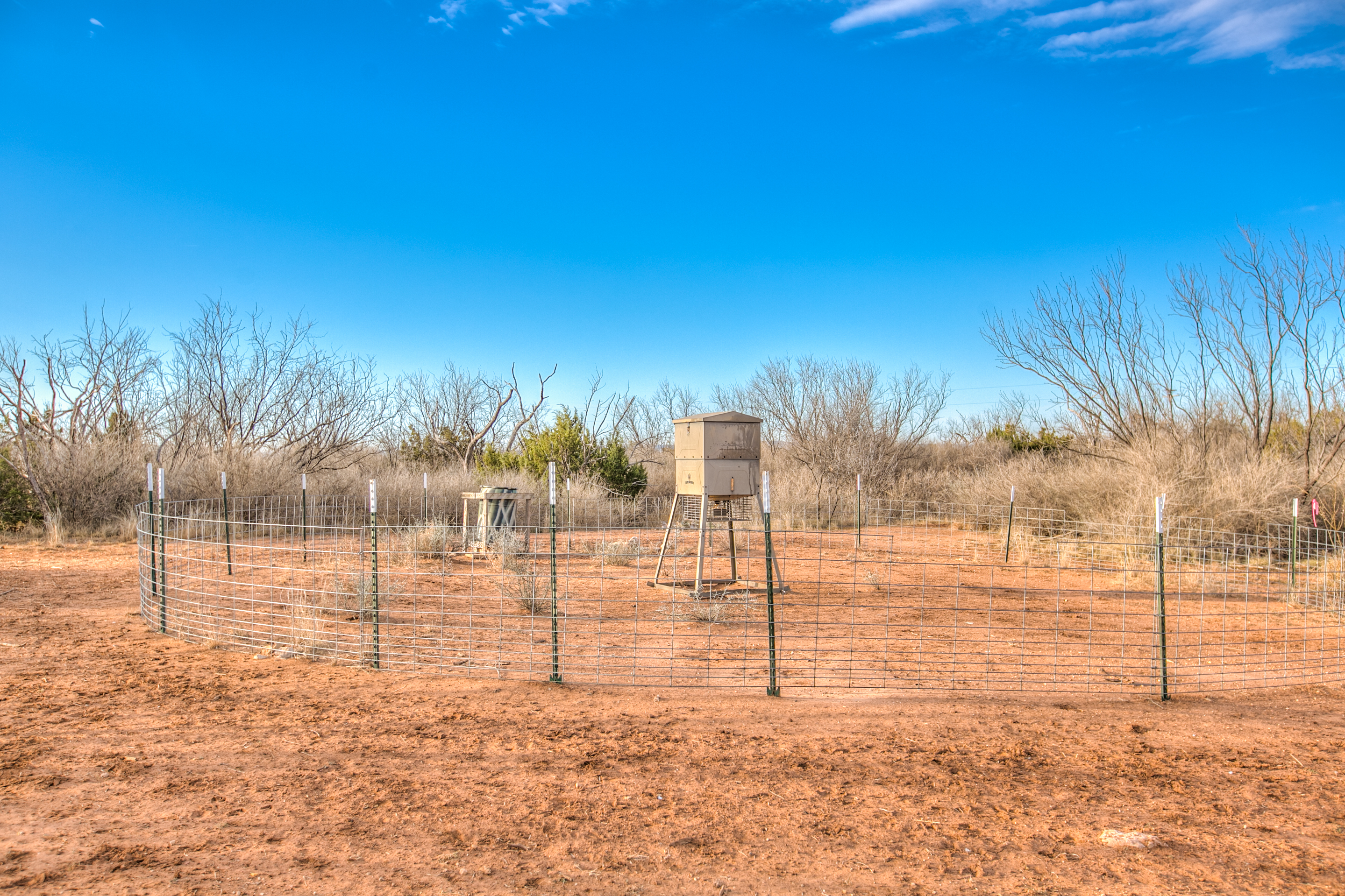 The property includes three blinds and feeders, with the owner providing supplemental feed year-round. Wildlife drinkers are located near the feeders and are supplied by hauled water, gravity-fed into small troughs. Year-round feeding has been beneficial in attracting and holding wildlife on the property. Feral hogs are present in the area, allowing for year-round hog hunting opportunities.